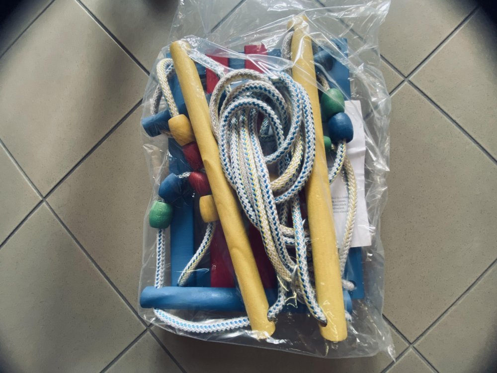 | Alapanyag | fa, pp kötél |