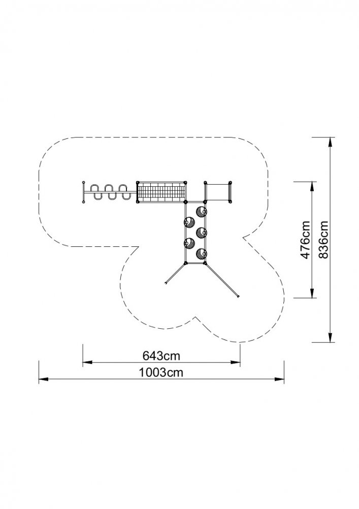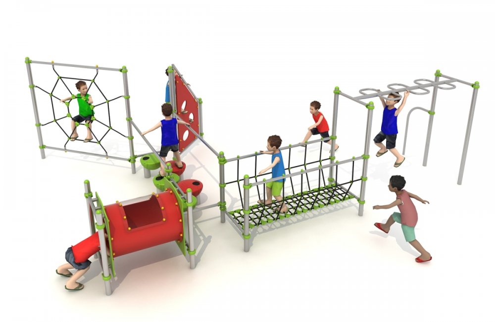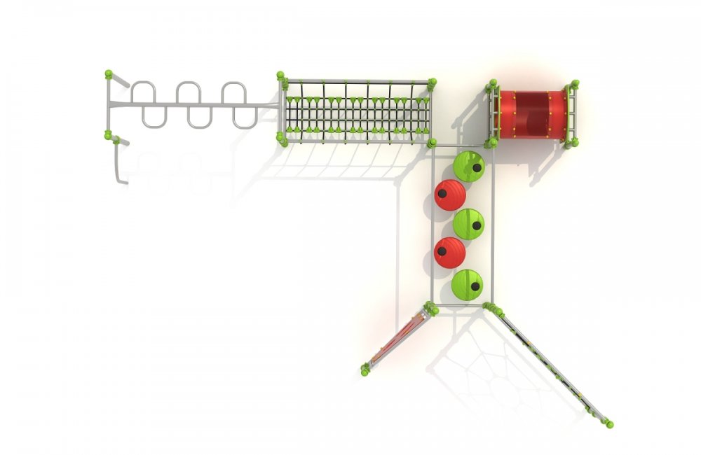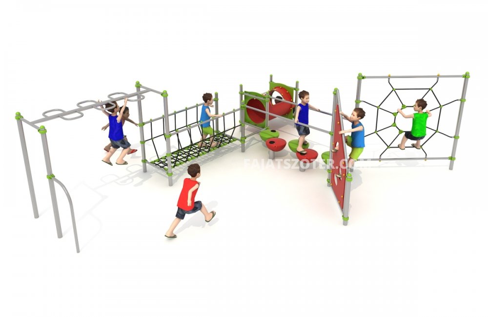 | Alapanyag | rozsdamentes acél tartószerkezet, erősített csúszdatest, LLDPE oldalfal,acélbetétes kötélháló |