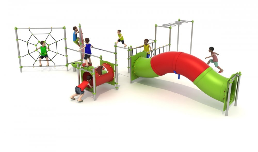 | Alapanyag | rozsdamentes acél tartószerkezet, erősített csúszdatestek, LLDPE oldalfal |