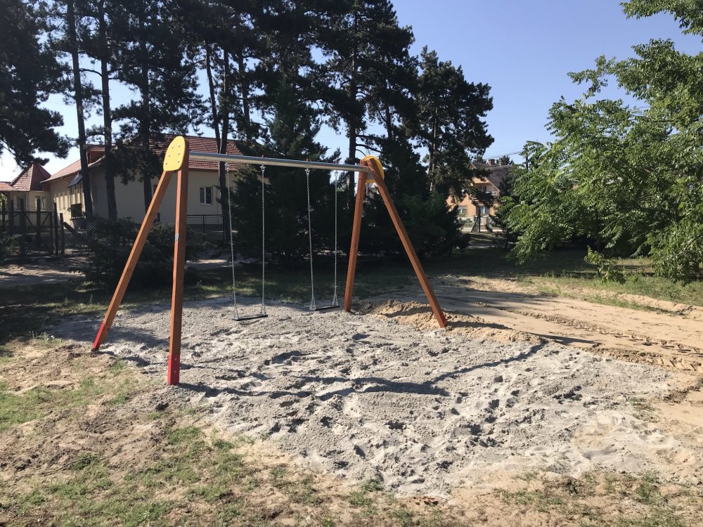 Kétüléses hinta 2db lapülőkével. Eszköz mérete: 4 x 3,15 x 2,29 m Szabadesés magassága: 1,35 m Ütéscsillapító talaj legkisebb mérete természetes ütéscsillapító talajanyag felhasználásával: 7,7 x 3,5m Az ár nem tartalmazza az ütéscsillapitó talaj kiépítésének és talajanyagának költségét, valamint a szállítást és telepítést. Az ár tartalmazza a hintaülőkék árát is.