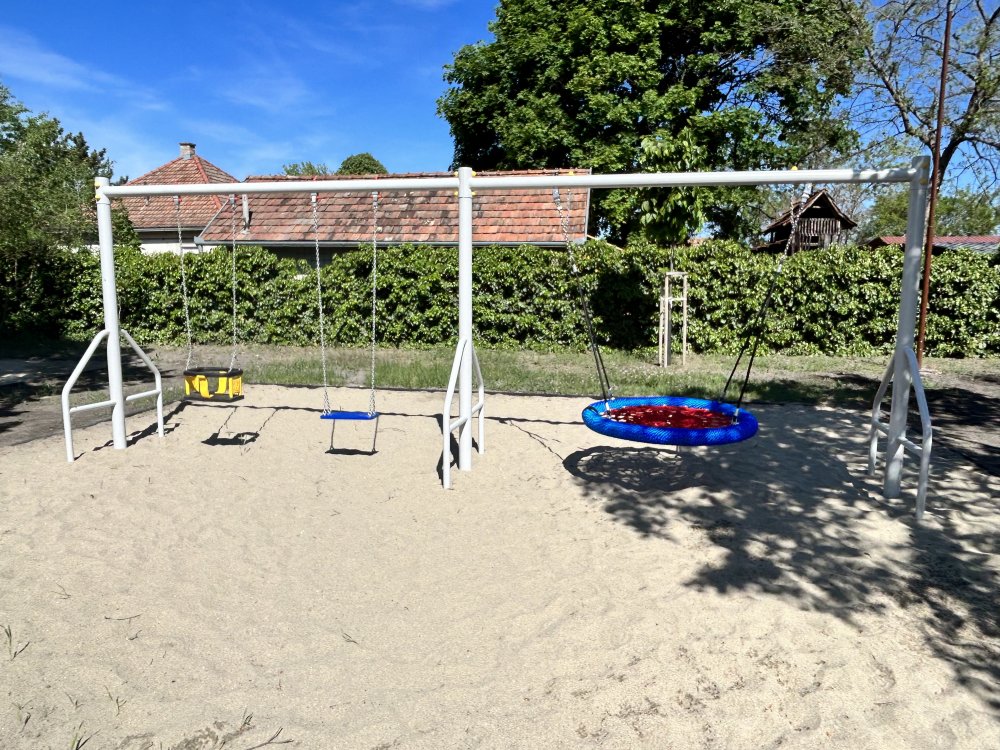 | Alapanyag | Porfestett acél tartószerkezet, alubetétes lap- és bébiülőke, acélbetétes kötélből fészekhinta D:120 cm |
