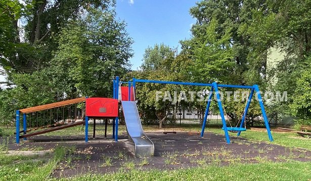 | Alapanyag | Fém tartószerkezet, csúszdalapja rozsdamentes acélból készült. Padlózata telitett borovi fenyőből készült. A lengőlétra láncai minősitett teherláncból készültek. Hintaülőkéi : alubetétes lapülőkék vulkanizált gumibevonattal és fészekhinta |