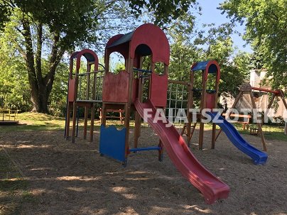 | Alapanyag | Telitett borovi fenyő tartóoszlopok és lécek, műanyag csúszdák, porszórt minősitett acél mászórudak és híd |