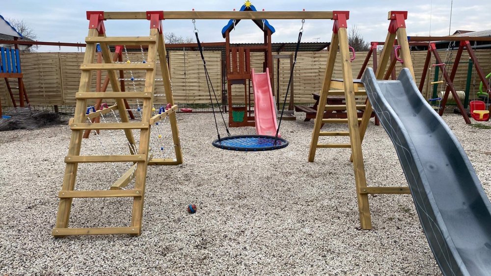 A játék tartalmaz egy 3 méter hosszú gerendát melynek egyik oldalán található mászólétra és egy mászóháló. A másik oldalán pedig található egy induló ahonnan egy 1,5 méterről induló műanyag csúszdán lehet lecsúszni. Az ár nem tartalmazza a szállítási költséget! Magánszemélyeknek ajánljuk!