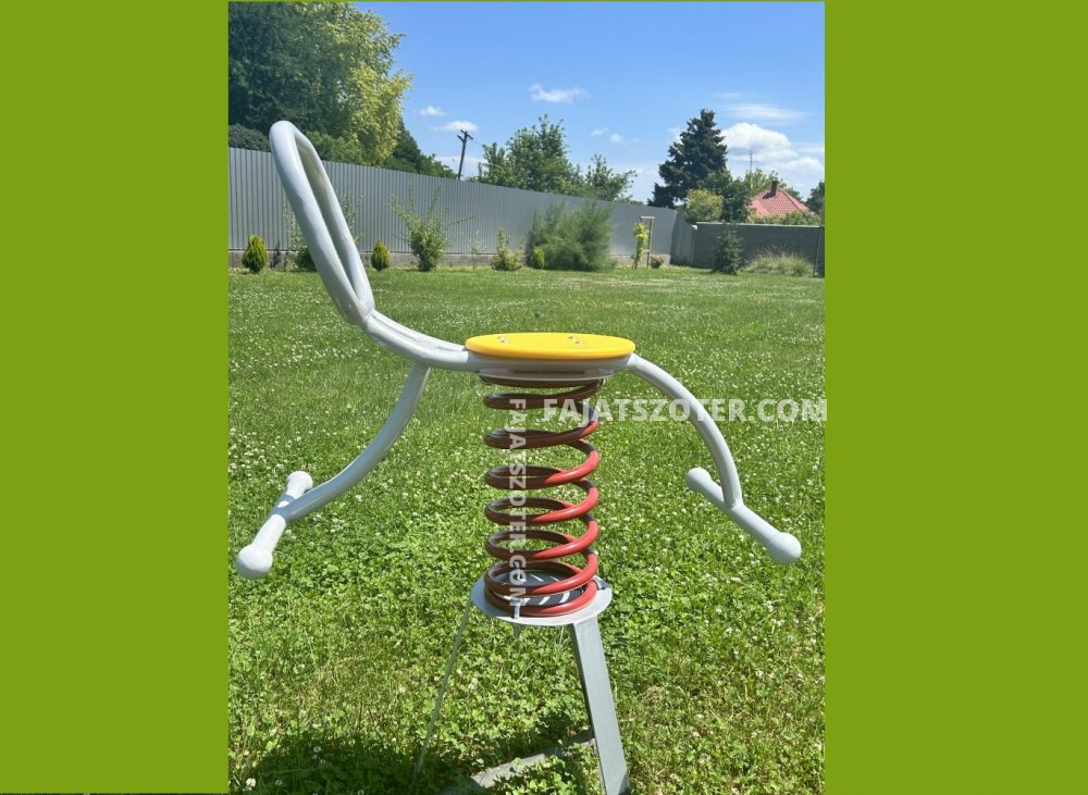 RU-4002 Fém kétoldali rugós eszköz Eszköz mérete: 0,84 x 0,45 x 0,80 m Szabadesés magassága: 0,60 m Legkisebb tere: 2,84 x 2,45 m Az eszköz érdekessége, hogy két oldalról lehet rá felülni, illetve hintázni. Ütéscsillapításnak az ápolt fű, a puha talaj is megfelel. Az eszköz ára nem tartalmazza a szállítás és telepítés költségét.