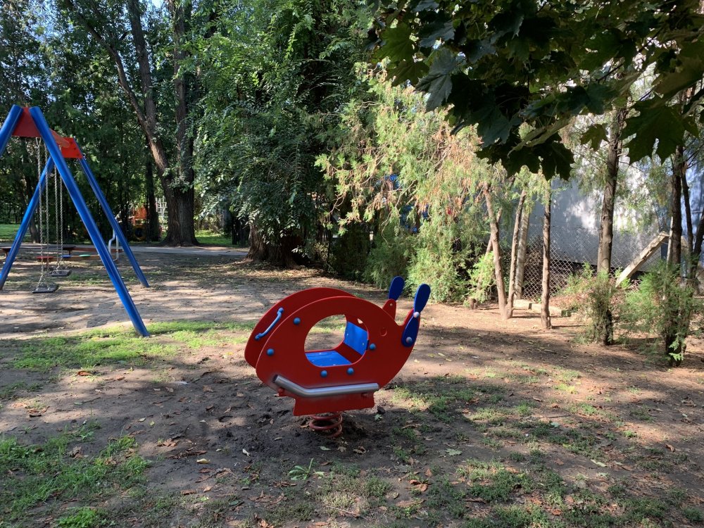 Ütéscsillapító talajnak az ápolt fű, a puha talaj is megfelelő.